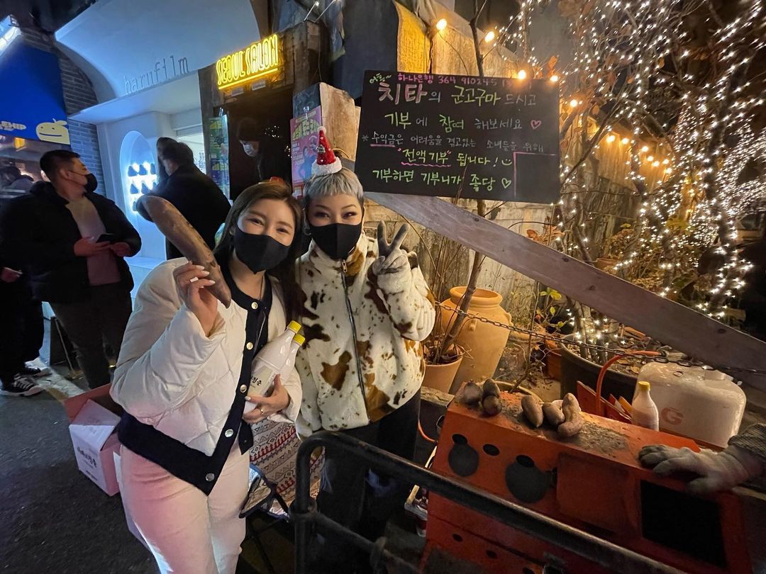 또 치타는 '치타의 군고구마 드시고 기부에 참여 해보세요. 수익금은 어려움을 겪고 있는 소녀들을 위해 전액 기부 됩니다. 기부하면 기부니가 좋당'이라는 문구를 써두고 군고구마를 팔고 있어 송가인과 함께 훈훈함을 자아냈습니다.