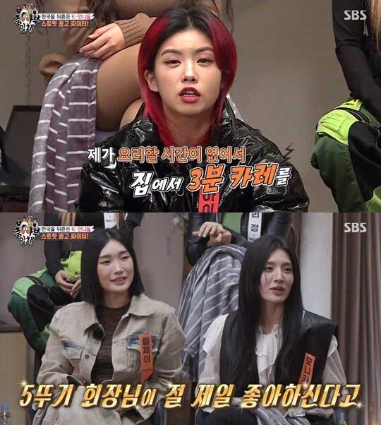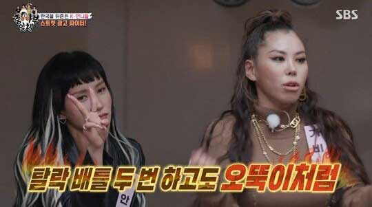 갑작스럽게 광고를 두고 경쟁이 붙자 댄서 아이키는 "저는 요리할 시간이 없어 집에서 3분카레를 자주 해 먹는다"고 말하자 이에 질세라 가비는 "저희 팀은 탈락 배틀을 두 번 하고도 오뚝이처럼 일어났다"며 재치를 뽐냈습니다.