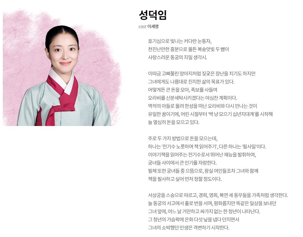 배우 이세영은 2021년 11월부터 '옷소매 붉은 끝동'에 주인공 '성덕임' 역으로 출연하며 또다시 사극 불패신화를 쓰고 있습니다. '옷소매 붉은 끝동'이 진행되며 이세영의 매력으로 시청자들에게 재미를 선사하고 있습니다.