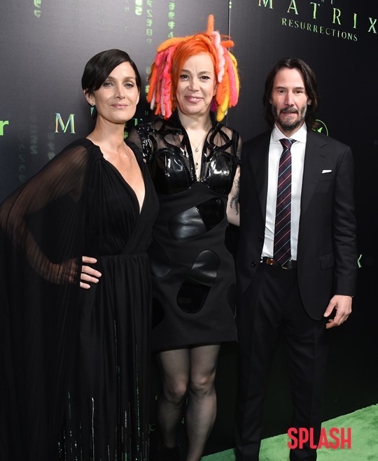 공개된 사진 속 키아누 리브스는 배우 캐리 앤 모스 및 라나 워쇼스키 감독과 다정하게 포즈를 취하고 있습니다.