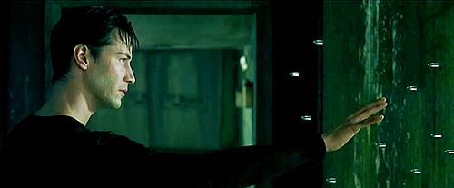 영화는 ‘네오’라는 이름으로 활동하는 해커 토마스 앤더슨(키아누 리브스 분)에 대한 소개로 시작하는데요. 그는 매트릭스 세계에서 유명한 해커인데, 매트릭스 세계를 빠져나가 기계에 대해 저항하는 인간 모피어스와 동료 트리니티의 초대를 받습니다.